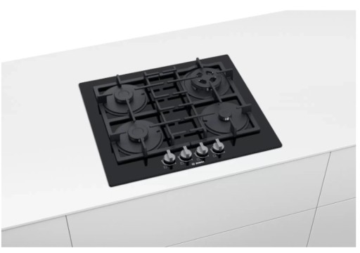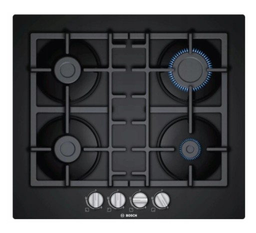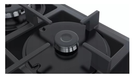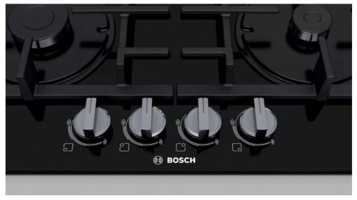 Płyta gazowa Bosch ze sterowaniem z przodu płyty, co zapewnia wygodną kontrolę pola grzewczego z przodu. Pokrętła mieczykowe ułatwiają ergonomiczną obsługę.