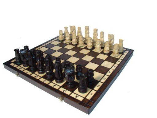 Przedmiotem aukcji są drewniane, ręcznie rzeźbione szachy GIEWONT