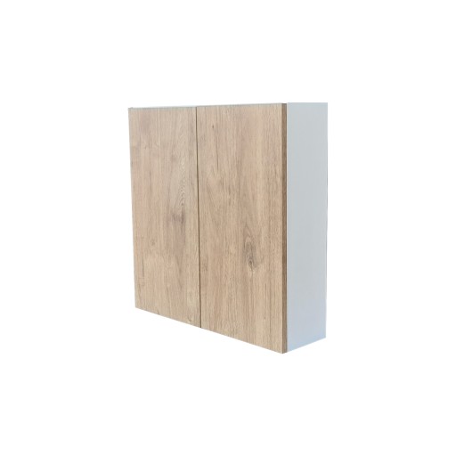 Szafka łazienkowa biała z frontem dębowym 60 złożona