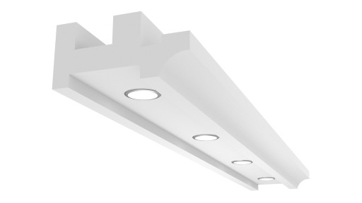 Aukcja dotyczy 1mb gładkiego gzymsu imitującego podwieszany sufit z możliwością montażu świateł halogenowych i listwy led oświetlającej sufit.