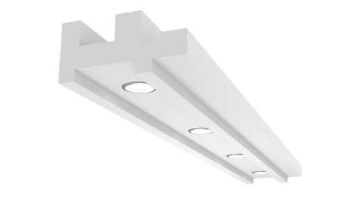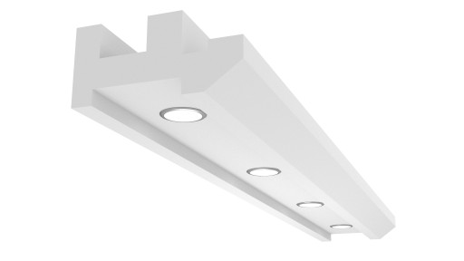 Z racji tego, że jest to biały styrodur w momencie zamontowania listwy LED będzie przebijać światło. Aby uniknąć przebijania światła przez styrodur należy wykleić obydwie ścianki rowka taśmą aluminiową srebrną samoprzylepną!
