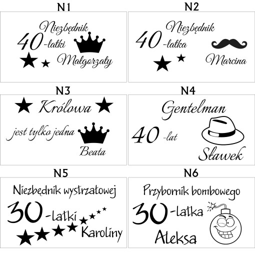 Przykłady te można dowolnie modyfikować lub też możemy wykonać zupełnie nowy indywidualny projekt graweru według przesłanych wytycznych.