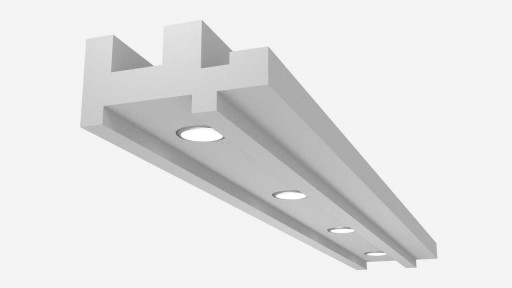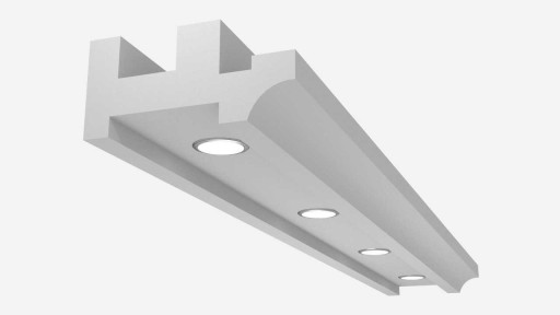 Aukcja dotyczy 1mb gładkiego gzymsu imitującego podwieszany sufit z możliwością montażu świateł halogenowych i listwy led oświetlającej sufit.