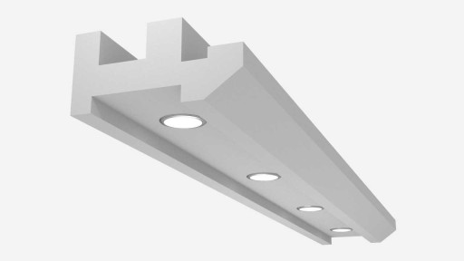 Z racji tego, że jest to biały styrodur w momencie zamontowania listwy LED będzie przebijać światło. Aby uniknąć przebijania światła przez styrodur należy wykleić obydwie ścianki rowka taśmą aluminiową srebrną samoprzylepną!