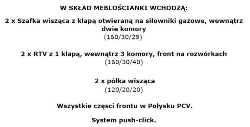 - w zestawie dołączona jest instrukcja montażu oraz wszystkie elementy montażowe (w tym kołki do zawieszenia mebli na zwykłej ścianie)