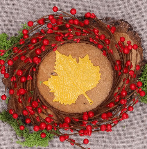 Liść klonu, zawieszka z dziurką na ogonku to idealny dodatek do wszelakich jesiennych kompozycji. Dobrze sprawdzi się zarówno przy wiankach jak i do zawieszenia na gałęziach. Wykonany jest z trwałego materiału jakim jest metal, posiadają ładną błyszczącą.
