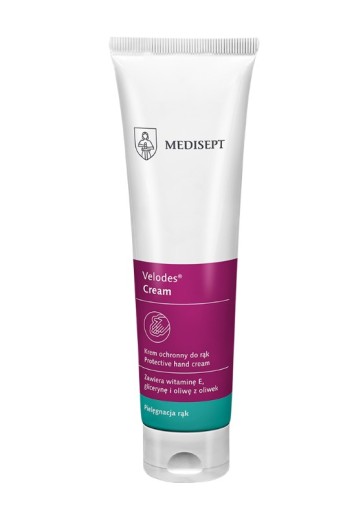 Zastosowanie: Velodes® Cream to delikatny krem do pielęgnacji skóry rąk i ciała. Działa ochronnie, nawilżająco i regenerująco. Pielęgnuje przesuszoną, podrażnioną i szorstką skórę dłoni. Zalecany jest do codziennego stosowania po częstym myciu rąk oraz po higienicznej dezynfekcji. Szczególnie zalecany dla personelu medycznego oraz osób narażonych na wysuszenie i macerację skóry w wyniku częstego mycia rąk i noszenia rękawic. Zapewnia dłoniom jedwabistą miękkość. Szybko się wchłania przynosząc natychmiastowe uczucie komfortu. Przebadany dermatologicznie.