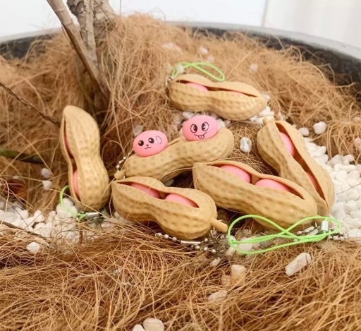Breloczek orzeszek to ciekawa zabawka sensoryczna zarówno dla dzieci jak i dla dorosłych. Strączek wykonany jest z rozciągliwej, elastycznej masy. Zabawa polega na wkładaniu i wyciskaniu fasolek ze strączka poprzez rozciąganie go. Fasolki również wykonane są z masy umożliwiającej ich swobodne rozciąganie.