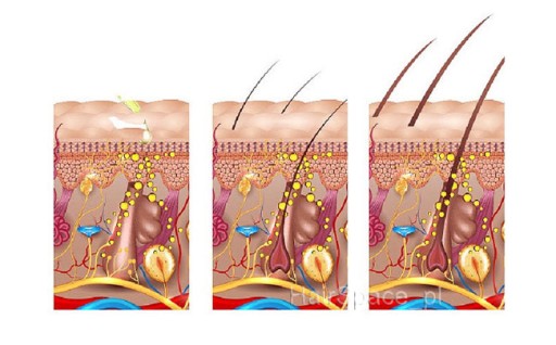 Hair Growth Spray + przez zawarte w nim ziołowe składniki odżywcze, które przenikają w głąb skóry głowy prosto do mieszków włosowych powodują, że włosy z łamliwych i cienkich po regularnym czasie stosowania stają się mocne, są mniej podatne na puszenie się oraz zauważalne jest przyspieszenie porostu włosów. Zwiększa się wchłanianie składników odżywczych. Można stosować go zarówno do skóry głowy jak i brody.