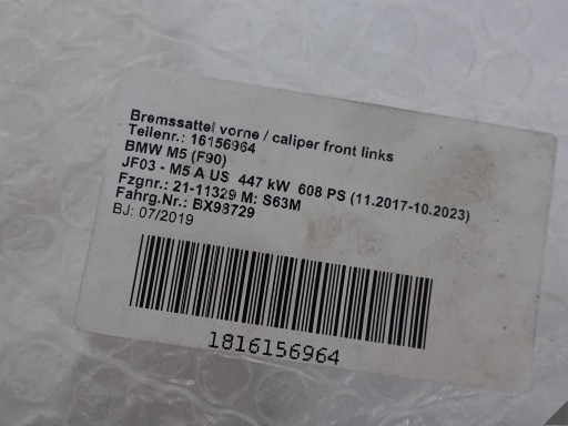 BMW M5 F90 M8 F91 ЗОЛОТОЙ СУППОРТ + НАКЛАДКИ ЛЕВЫЙ ПЕРЕДНИЙ