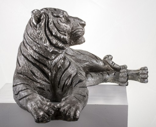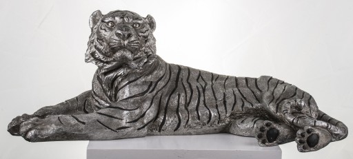 Большая серебряная фигура тигра, украшение сада в гостиной.