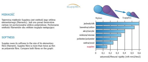 - większa miękkość i lekkość w stosunku do wyrobów z bawełny