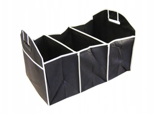 Wysokiej jakości, praktyczny organizer do bagażnika to niezbędny element wyposażenia każdego auta! Organizer wyposażony jest w trzy duże przegrody oraz cztery kieszenie dzięki którym zachowasz ład oraz porządek w swoim bagażniku. Organizer jest składany, dzięki czemu zawsze można mieć go pod ręką i rozkładać w razie potrzeby. Wyposażony jest w mocne uchwyty dzięki którym z łatwością przeniesiesz go wraz z zawartością w dowolne miejsce.