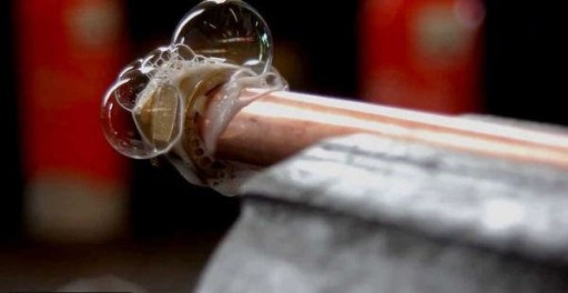 - w miejscu, którym instalacja jest nieszczelna, powstają pęcherzyki