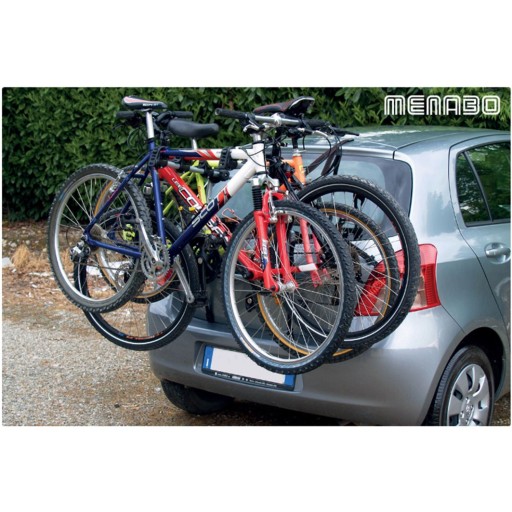 Uniwersalny bagażnik BIKI firmy Menabo do transportu do trzech rowerów mocowany na tylną klapę samochodu.