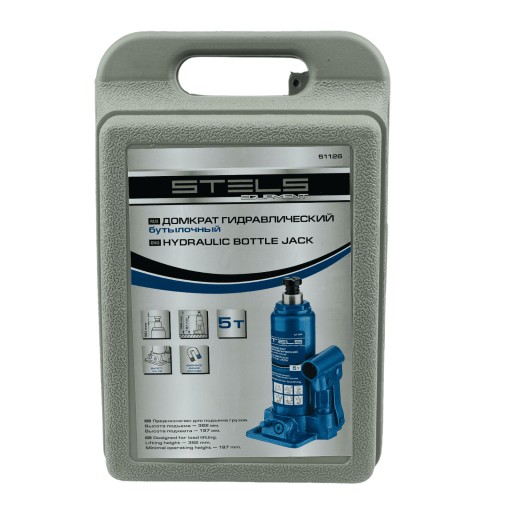 Podnośnik hydrauliczny butelkowy, z walizką, 5 ton, 197-382 mm - STELS