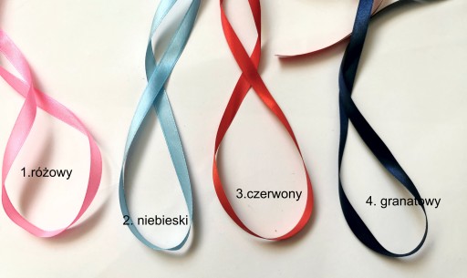 Do wyboru są również 4 kolory taśm do medali o szerokości 9mm: różowy, czerwony, niebieski i granatowy - można mieszać kolory.