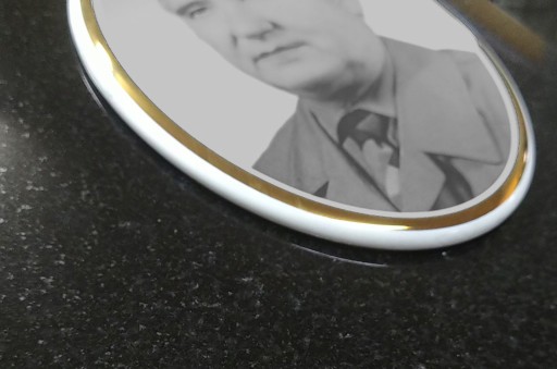 Черно-белое фото надгробия из фарфора для памятника