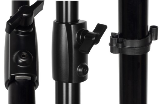 Producent zaprojektował statywy z myślą o korzystaniu z akcesoriów wszystkich wiodących producentów oświetlenia studyjnego. Z tego powodu wyposażono go w trzpień dwustronny 1/4 – 3/8 cala oraz uchwyt na kabel. Udźwig pozwala na zamontowanie lampy błyskowej wraz z softboxem średnich rozmiarów.