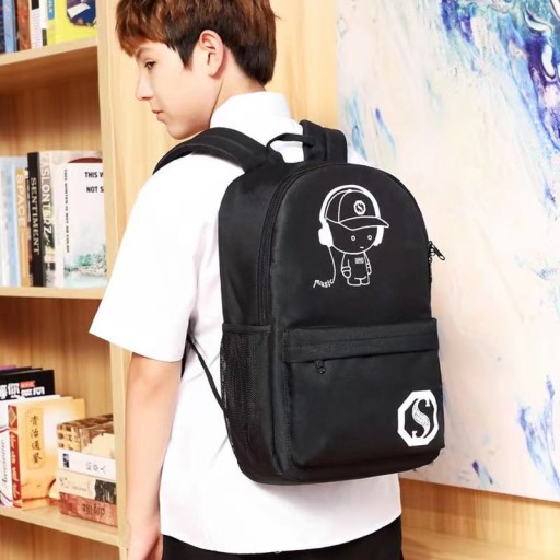 Świecący wodoodporny plecak szkolny z portem USB, kablem USB, blokadą antykradzieżową i piórnikiem