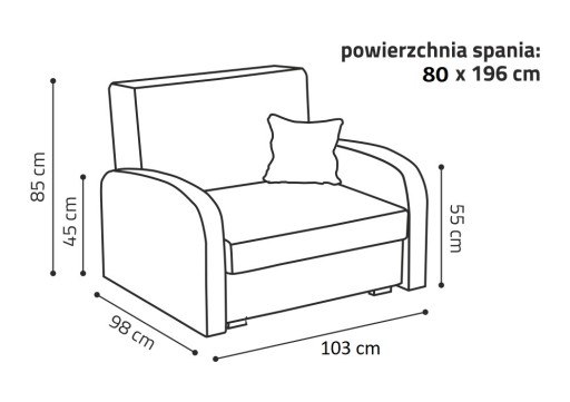- powierzchnia spania: 196 cm x 80 cm