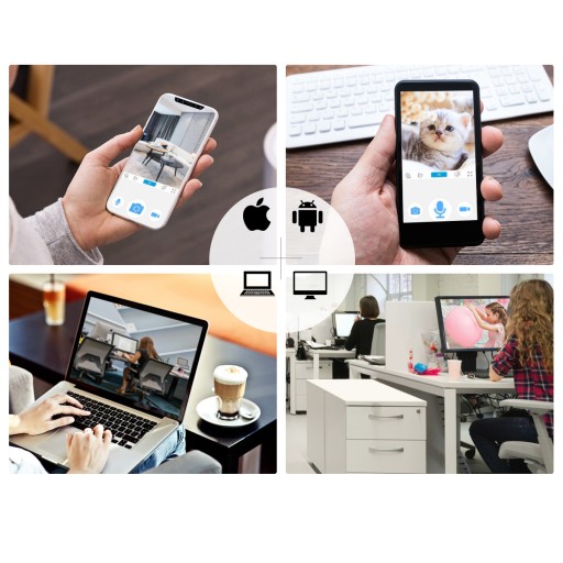【Multi-Platform & Easy Control】Dostęp do bezprzewodowej kamery wifi z SriHome APP w dowolnym miejscu i czasie. Sytuacja życiowa może być dostępna poprzez iOS/Android mobile Phone, Windows PC , Apple Mac Software i tak dalej.Wsparcie dla WIFI, AP hotspot i tryb LAN. Szybko skonfigurować WiFi z kodem QR sprawia, że ustawienie prostsze. Obsługuje również 5 użytkowników jednocześnie online do oglądania tego samego wideo.