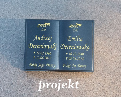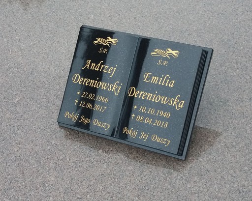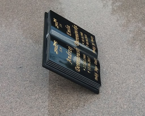 czarna książka GRANITOWA nagrobkowa o wymiarach 30x40cm. Granit jest naturalną skałą o bardzo szerokim zastosowaniu w budownictwie i architekturze. To jeden z najlepszych materiałów stosowanych do budowy nagrobków ze względu na jego piękno i trwałość.