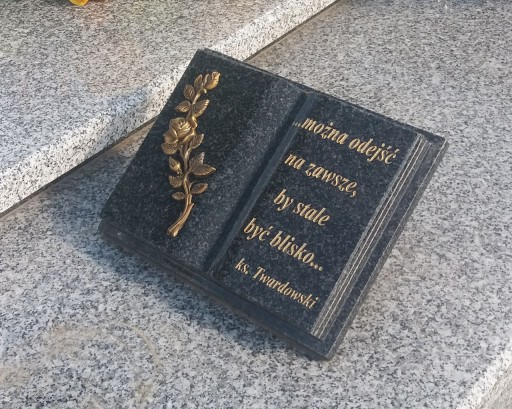 Książka jako dodatkowa ozdoba na pomniku, zawierająca motto, sentencję, cytat...