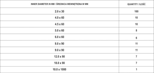 W skład zestawu wchodzą następujące rurki termokurczliwe: