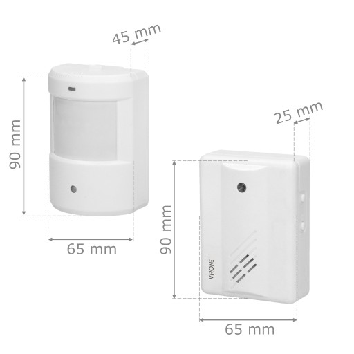 ✅ CZUJNIK RUCHU PIR + SYGNALIZATOR - Czujnik ruchu bezprzewodowo (falami radiowymi) przesyła impuls do odbiornika, który sygnałem dźwiękowym powiadamia o wykryciu ruchu w strefie chronionej.