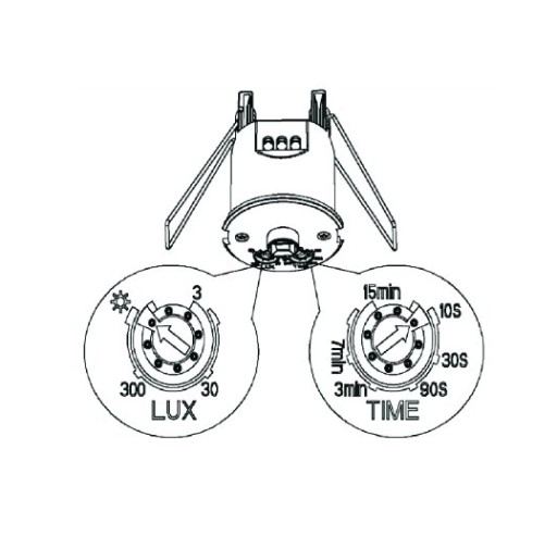- TIME - regulacja czasu świecenia: Pokrętło umożliwia określenie czasu przez jaki urządzenie będzie działało po aktywacji czujnika. Czas świecenia liczy się od momentu wykrycia ruchu do momentu wyłączenia.