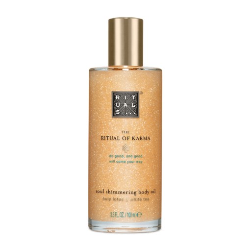 Odkryj swój wewnętrzny blask dzięki połyskującemu olejkowi do ciała z kolekcji The Ritual of Karma.