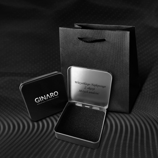 Tylko w tej ofercie dostępna wraz z ELEGANCKIM METALOWYM PUDEŁKIEM Z LOGIEM GINARO oraz CZARNĄ, RÓWNIEŻ LOGOWANĄ TOREBKĄ PREZENTOWĄ.