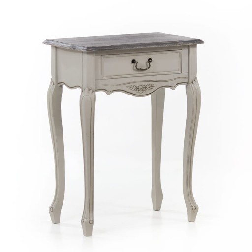 Szara drewniana konsola. Można ją bardzo wszechstronnie wykorzystać. Postawiona w przedpokoju, salonie, sypialni lub kuchni wprowadzi szyk i elegancję. W przedpokoju, odkładając na nią klucze lub dokumenty sprawisz, że będą łatwe do znalezienia. Szafka posiada jedna szufladkę z ozdobnym uchwytem, a na listwie oraz nóżkach znajdują się dekoracyjne rzeźbienia. Z pomocą naszej konsoli bez problemu wyeksponujesz rośliny, ozdoby lub dekoracje. Dlatego zachęcamy do zapoznania się z dekoracjami dostępnymi w naszym sklepie.