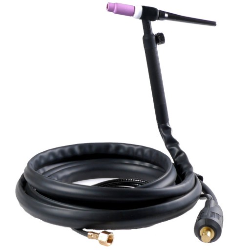 Uchwyt spawalniczy T-17V (z zaworkiem gazowym w główce palnika) to uchwyt chłodzony gazem do spawania metodą TIG Lift (elektrodą nietopliwą). Wykonany jest w oparciu o części importowane z krajów Unii Europejskiej oraz Azji. Typowa długości to 4m . Inne długości dostępne są na zamówienie. Przyłącze prądowe wyposażone jest we wtyk typu DINSE wraz z wtykiem szybkozłącza gazowego i standardową rękojeść w osłonie gumowej-karbowanej.
