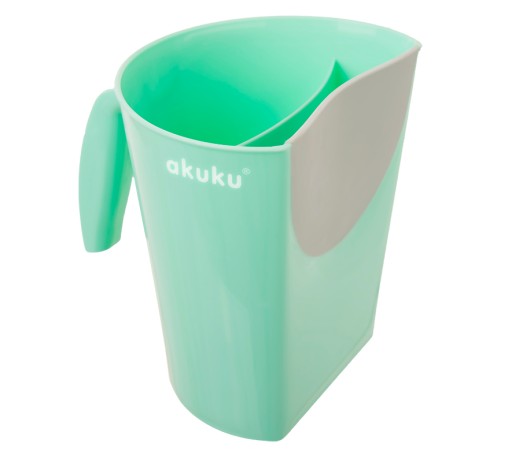 Specjalnie zaprojektowany kubek do spłukiwania włosów „akuku” uchroni Twoje dziecko przed niechcianymi kroplami wody spływającymi do oczu podczas mycia włosów. Szybko i łatwo Twoja pociecha przekona się do mycia głowy! Łatwy i wygodny w użyciu. Nareszcie mycie głowy bez łez! Wyprofilowany kształt ułatwia mycie ciała i włosów podczas kąpieli. Elastyczna powłoka dostosowuje się do kształtu głowy i zapobiega dostaniu się wody do oczu. Dwie komory zapewniają dokładniejsze spłukiwanie – komora przednia służy do spłukiwania włosów z boku głowy, natomiast komora tylna w tym samym czasie spłukuje górną i tylną część głowy dziecka, dzięki czemu mycie przebiega znacznie szybciej. Wykonany z bezpiecznych i trwałych materiałów.
