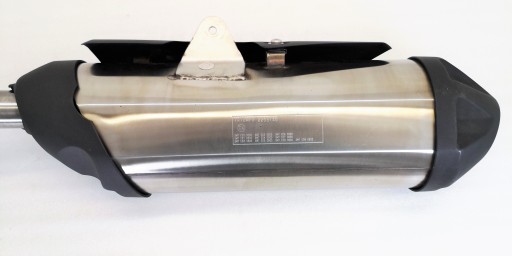 Tłumik jest w stanie dobrym widocznym na zdjęciach, ogółem ładny, ma lekkie zarysowanie, ale bez wgnieceń, ze świeżego motocykla.