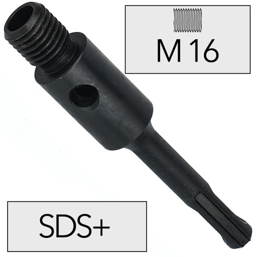 - Umożliwia połącznie otwornic i wierteł puszkowych z gwintem M16 w wiertarce z uchwytem SDS+