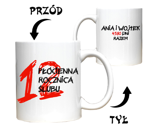 - 2 x kubek o pojemności 330ml - z nadrukiem dwustronnym, wykonany metoda sublimacyjną, klasa A+ pozwala na mycie w zmywarce.