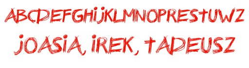 Czcionka użyta w projekcie - przykład imion