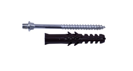 Śruba dwugwintowa zakończona z jednej strony standardowym gwintem metrycznym M8 a z drugiej wkrętem z kołkiem rozporowym