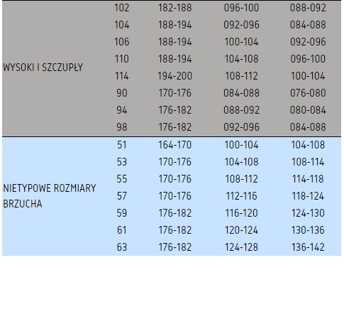 - Możliwość regulacji obwodu pasa dzięki gumce