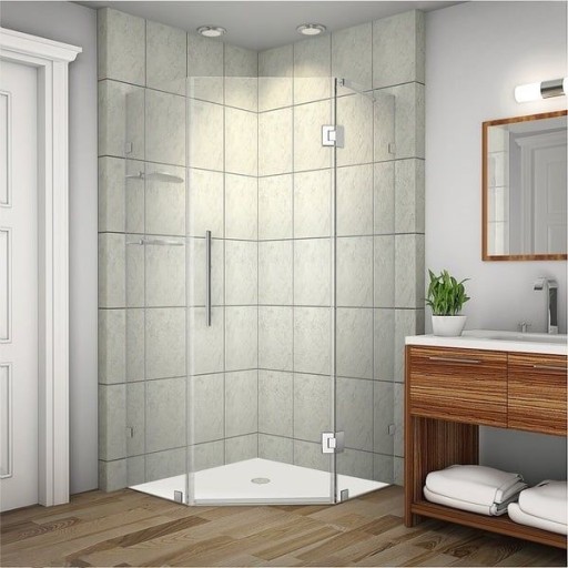 ПЯТИГОНАЛЬНАЯ БЕЗКАРКАСНАЯ ДУШЕВАЯ КАБИНА 90х90+бр.