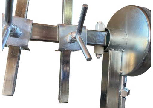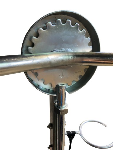Dopasowane grube zęby na kole blokującym sprawiają, że element zawieszony na stojaku jest stabilnie zamocowany. Szerokości pojedynczych zębów zaprojektowane są tak, by idealnie pasowały do średnicy rurki. Dzięki zastosowaniu technologii cięcia laserowego zębatki i specjalnej tulejki w rurce wyeliminowany został problem luzów zębatki w rurce-nie tak jak, ma to miejsce w wielu importowanych stojakach, gdzie ząb trapezowy nie jest dopasowany do średnicy rury blokującej. W naszych stojakach za prawidłowe, stabilne blokowanie odpowiada CAŁY ZĄB na zębatce a nie końcowy najszerszy fragment zęba na kole blokującym. Stojak wyposażony jest w dodatkową blokadę (przymocowaną na smyczy) dającą pewność, że nawet przy ciężkich elementach nie nastąpi przeskoczenie na zębie. Dzięki współpracy z wieloma firmami z branży lakierniczej, nasze stojaki przeszły prawdziwy "poligon doświadczalny" dzięki czemu uzyskaliśmy wiele opinii, że wszelkie luzy zostały wyeliminowane do minimum co znacznie ułatwia pracę, gdy obrabiany element po zamontowaniu na stojaku nie kołysze się.