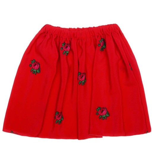 Piękna spódniczka w czerwonym kolorze ozdobiona ludowymi wzorami; idealne uzupełnienie stroju krakowianki lub góralki. Zachwyci na każdym balu czy to karnawalowym, czy na szkolnym balu przebierańców. Z pewnością ten regionalny dodatek będzie widoczny z daleka i zachwyci koleżanki. W takiej zabójczej spódniczce każda dziewczynka będzie się czuła wyjątkowo jak Maryna i oczaruje niejednego Janosika.