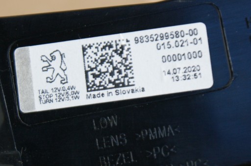 PEUGEOT 308 2021 КОМПЛЕКТ ЛАМП ПРАВЫЙ ЛЕВЫЙ ЗАДНИЙ