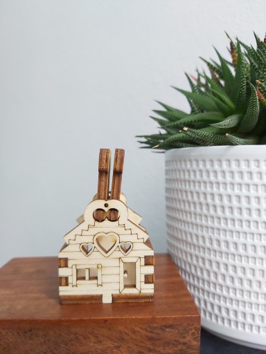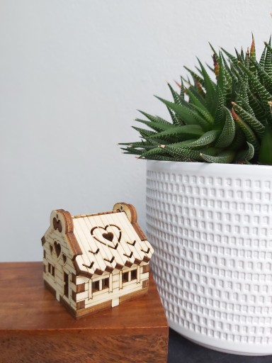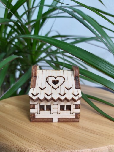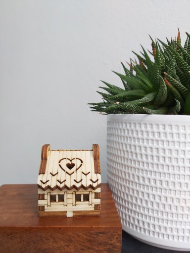 DREWNIANY DOMEK Z OTWIERANYM DACHEM- DEKORACJA DO KOMPOZYCJI W SZKLE