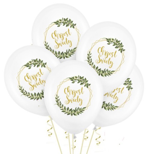 Zestaw 5 dużych, lateksowych balonów na Chrzest Święty.