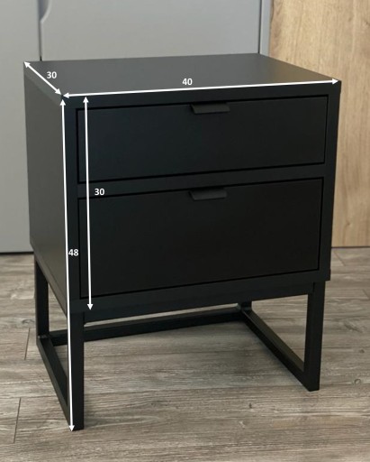 Szafka nocna Loft CZARNA w to uniwersalny produkt, który wpasuje się w niemal każdy styl. Dzięki projektowi inspirowanego loftowym designem Twoja sypialnia, przedpokój, salon nabiorą funkcjonalności oraz wyjątkowości. Zastosowanie jednego koloru miało za zadanie dodać oryginalności i charakteru. Całość sprowadza się do nowoczesnego, eleganckiego look'u.