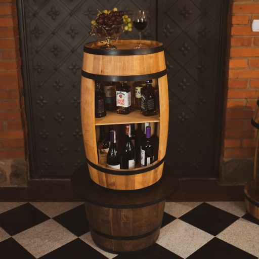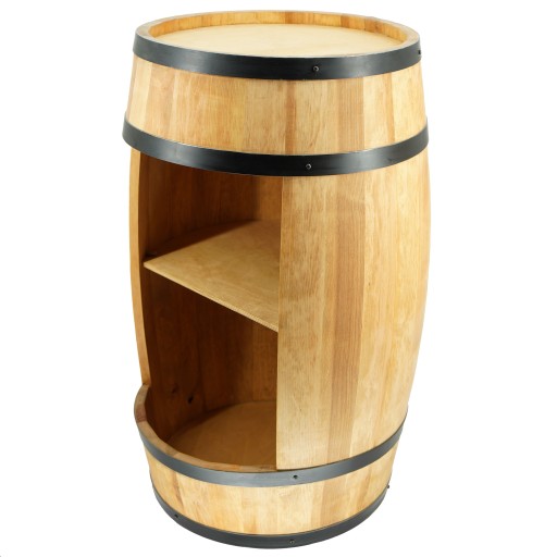 Beczka – barek z półką to wyjątkowy mebel zapewniający unikalną dekorację wnętrza połączoną z praktycznym zastosowaniem. Każda beczka jest ręcznie robiona zaczynając od cięcia desek w tartaku kończąc na ręcznym ściąganiu bednarek nadających beczce jej wyjątkowy wypukły kształt. Barek mieści ok. 40 butelek (w zależności od kształtu i rozmiaru).